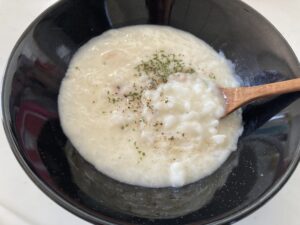 薄力粉を使った時と比べると たんぱく質は8.0g→0.1g、カリウムは120mg→17mg