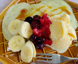 でんぷん薄力粉で作る「マスカットのパンケーキ」のレシピを公開しました。 フライパンで簡単にフルーツと紅茶のパンケーキが焼けます。レシピはシャインマスカットですが、リンゴなどでも作れます✨ 1/4切れで228 … Continue reading