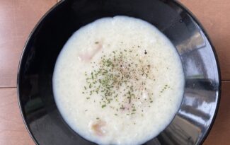 火を使わないレシピ「カルボリゾット」を公開しました。 タンパク質に余裕があれば卵をのせると更においしくなります