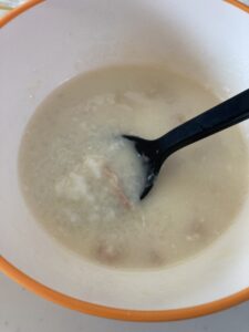 ③ ①にもち粉、だしわりしょうゆ、塩と②を加えて軽く混ぜ、炊飯する。
