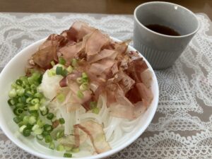 レシピ公開「きしころ(冷たいきしめん)」 Posted 2025年9月12日 でんぷんきしめんで作る「きしころ(冷たいきしめん)」のレシピを公開しました。 まだまだ残暑厳しいですが、大盛のかつお節で気分が上がります! (私だけでしょうか…)
