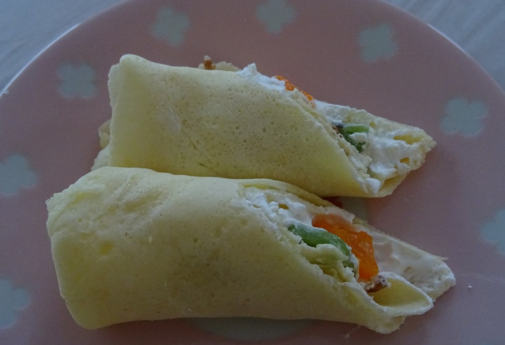 ジンゾウ先生のでんぷんホットケーキミックスとでんぷん薄力粉で作るレシピです。生地の作り方を覚えると、甘いクレープも、野菜やツナを巻いた軽食クレープもつくれます。
